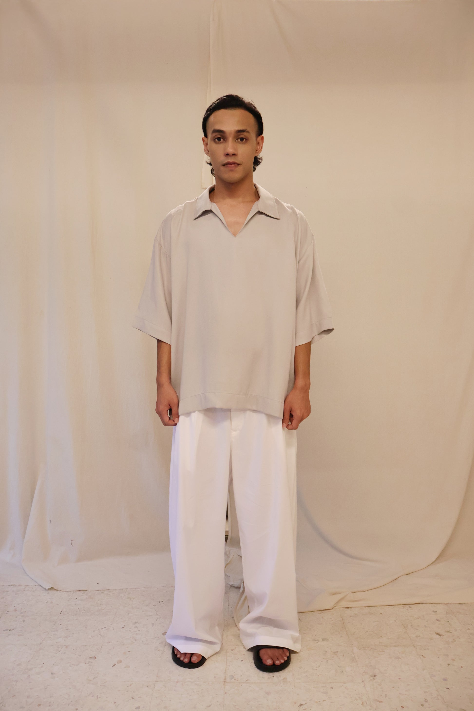 Introducing the La Jik Short Sleeve Oversized Top – a casual yet refined essential that effortlessly blends comfort with style. Available in earthy brown and classic grey, this V-neck collar top is designed for those who appreciate laid-back sophistication. The short sleeves bring a touch of breeziness, making La Jik the perfect choice for warmer days. Crafted from a breathable cotton-Tencel blend, this shirt combines ease of movement with a contemporary aesthetic. Whether you're strolling through the city or enjoying a leisurely day out, La Jik ensures you make a statement with every step. Redefine your casual wardrobe with this effortlessly chic piece.